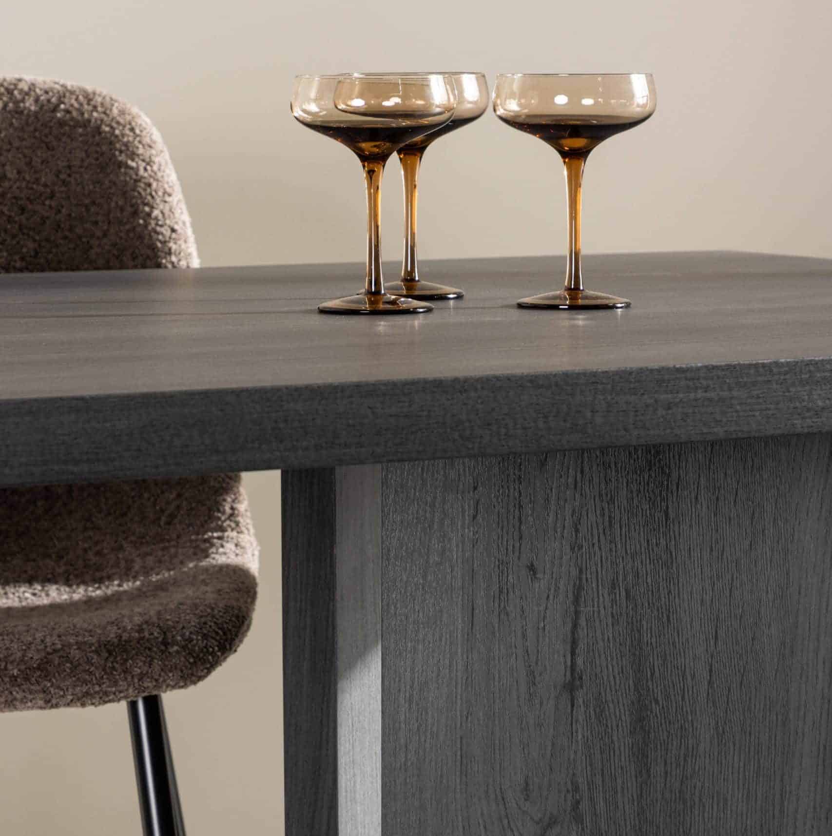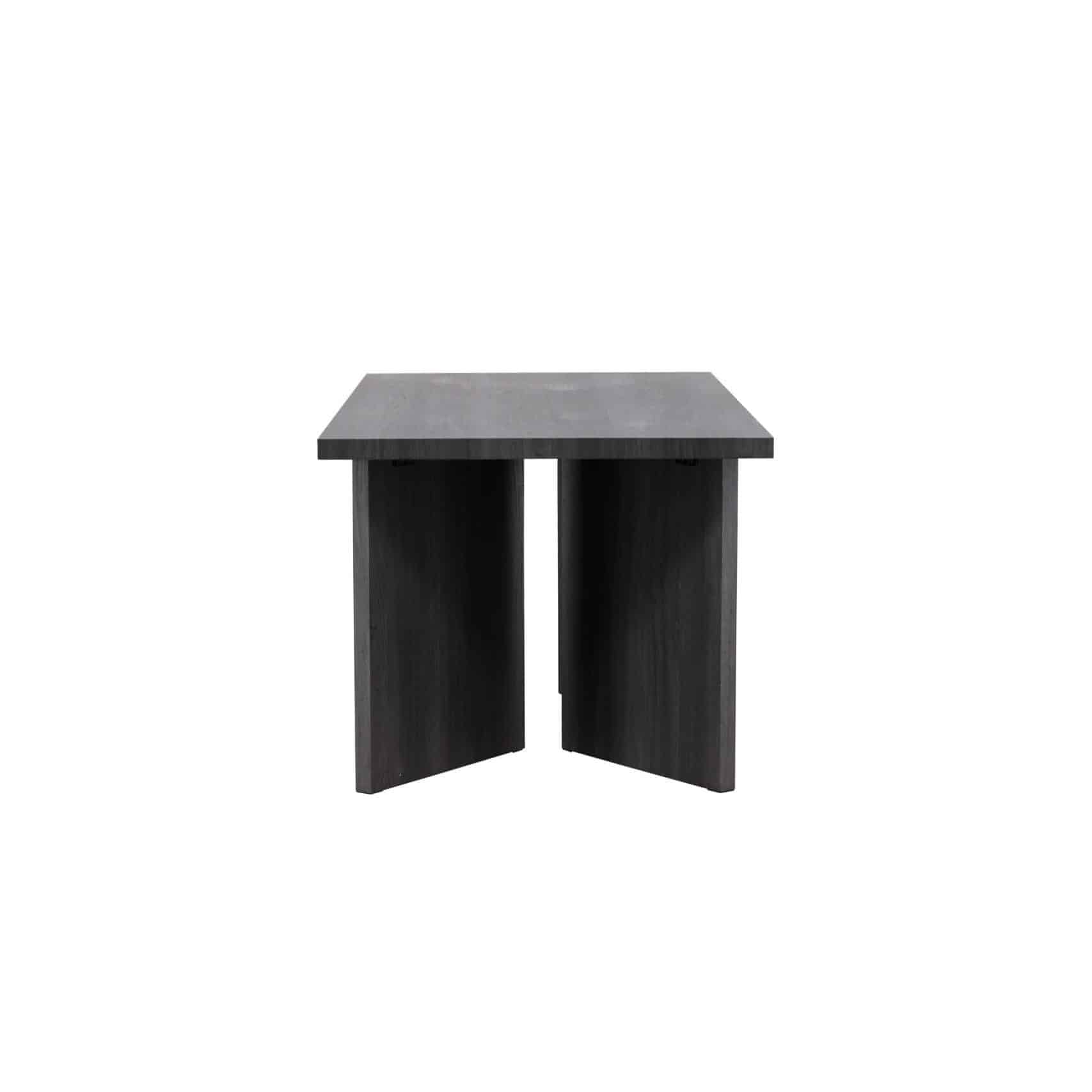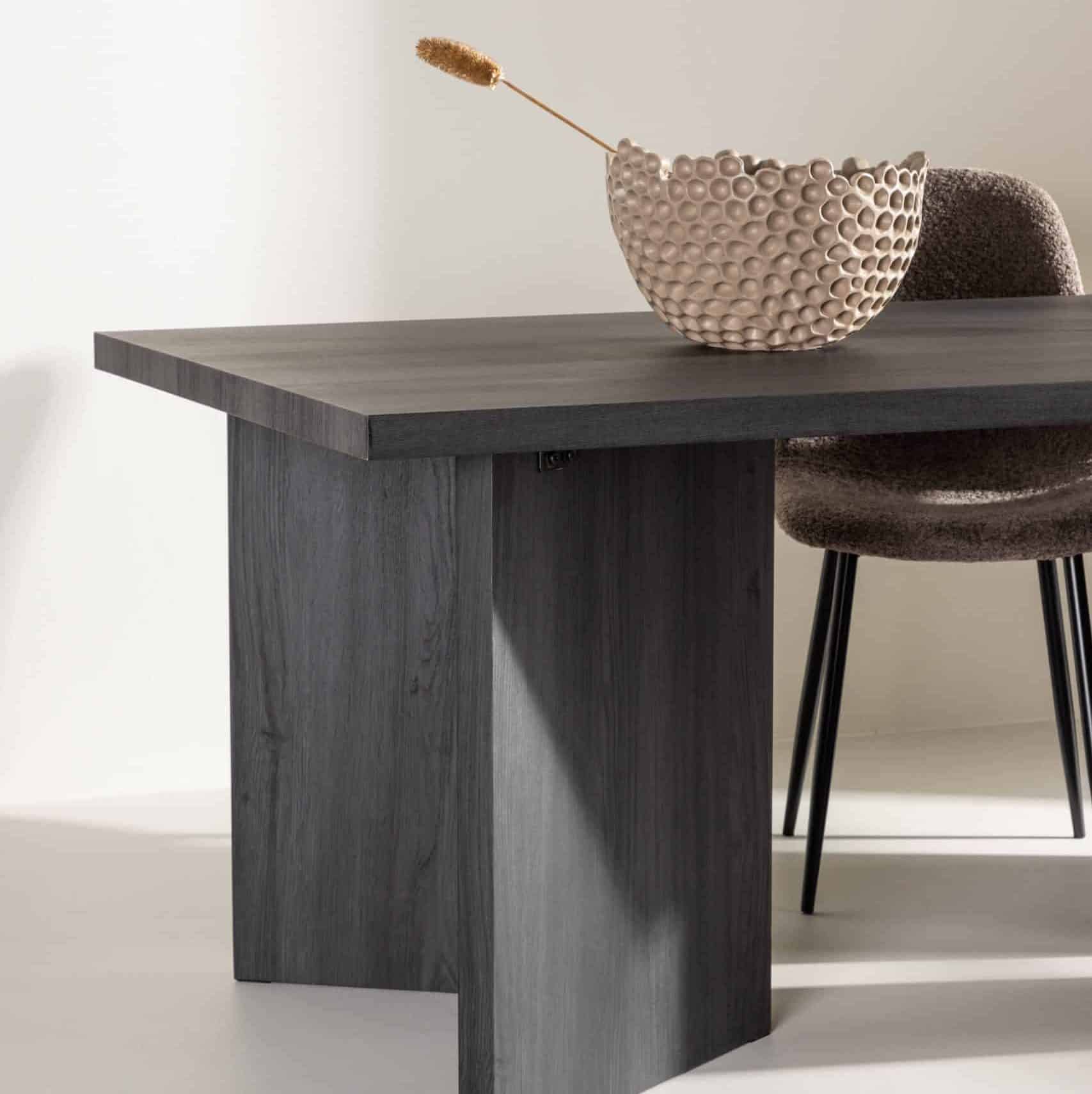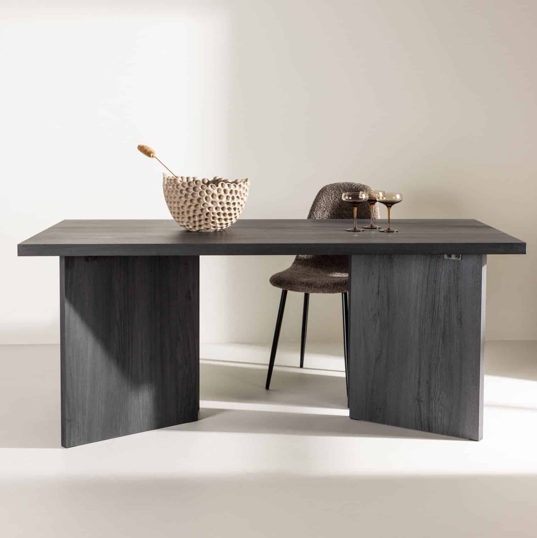 Blad: MDF tafelblad met een whitewash of diepzwarte houteffectafwerking; substantieel profiel van 4 cm voor een solide gevoel.