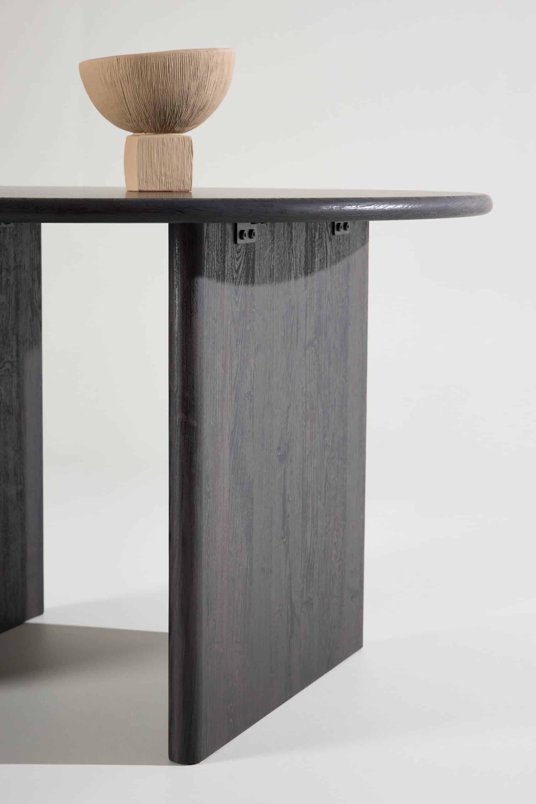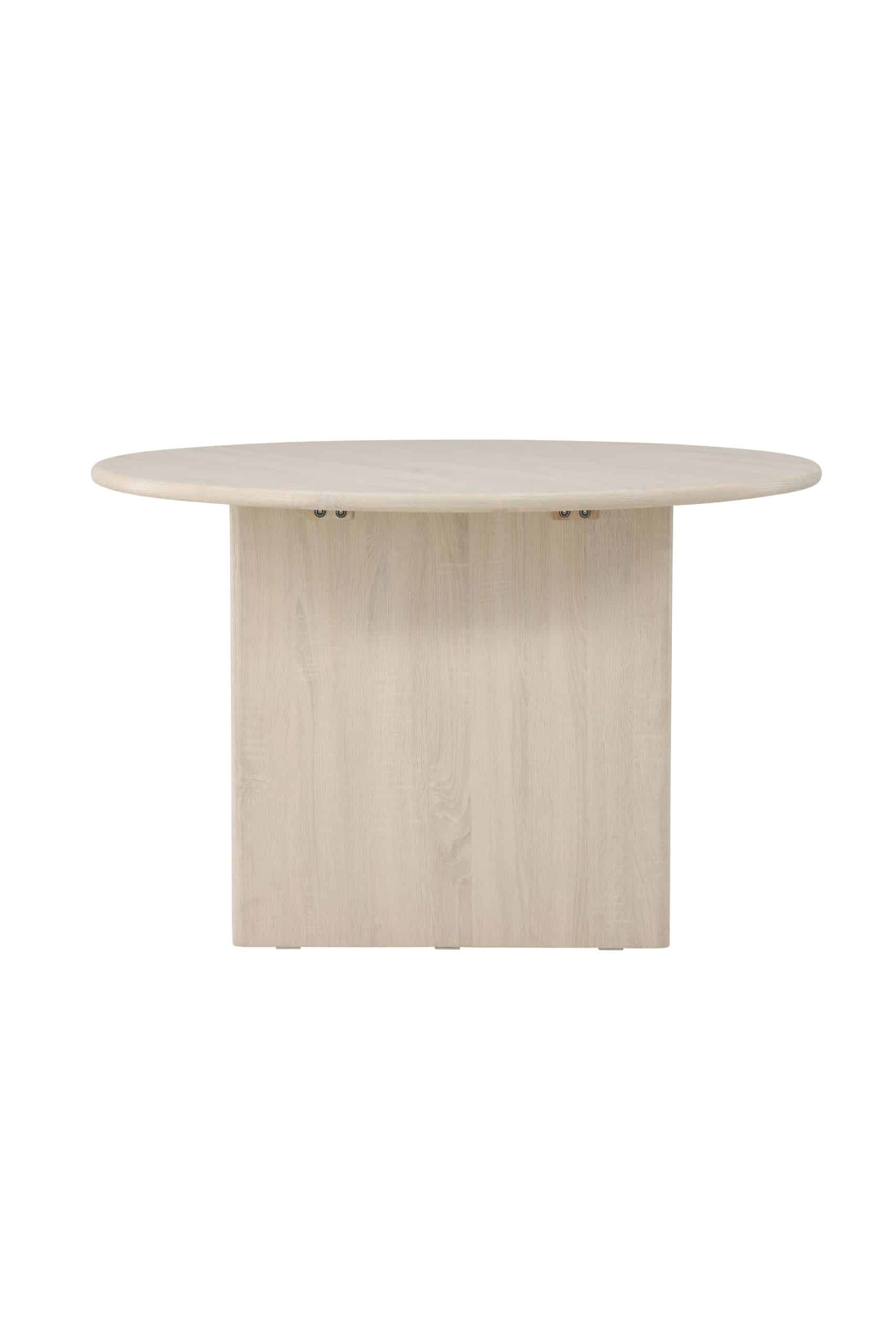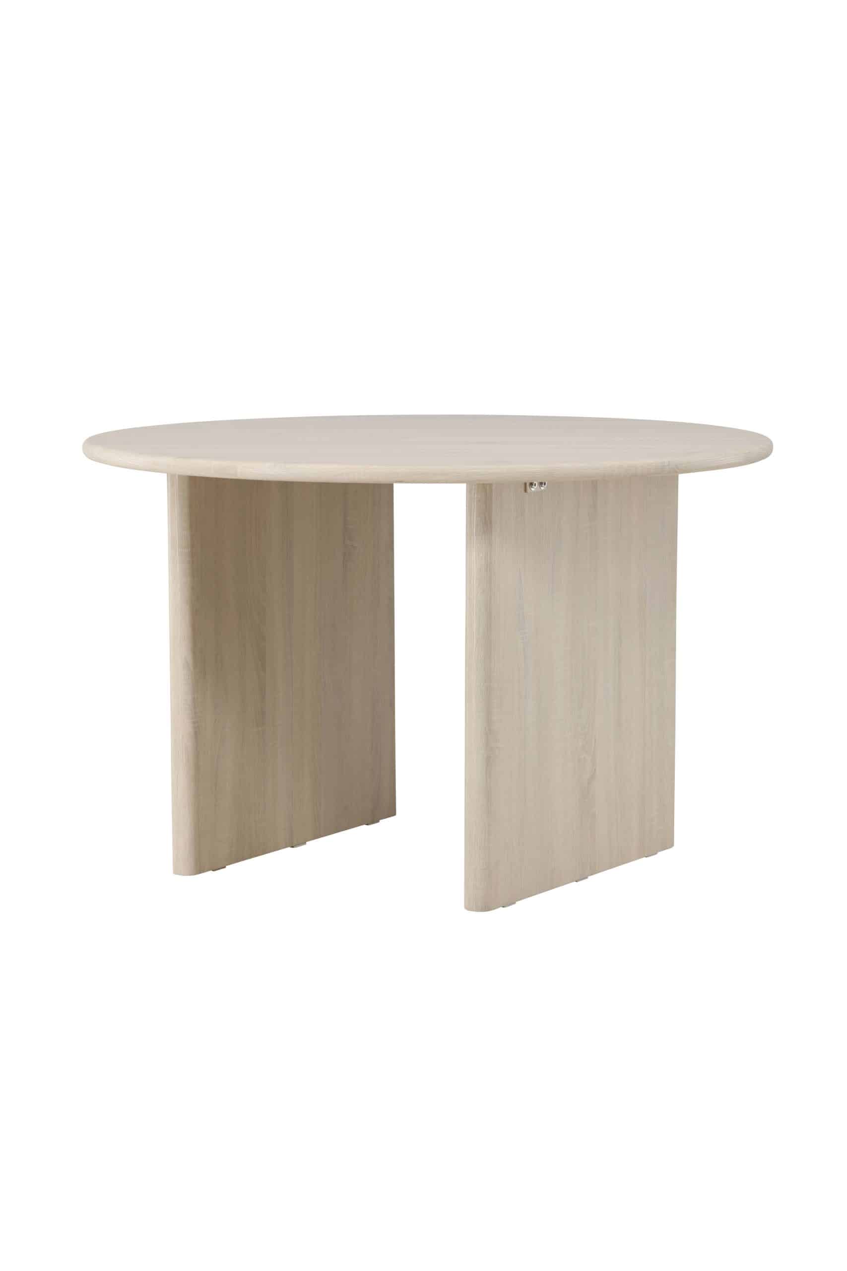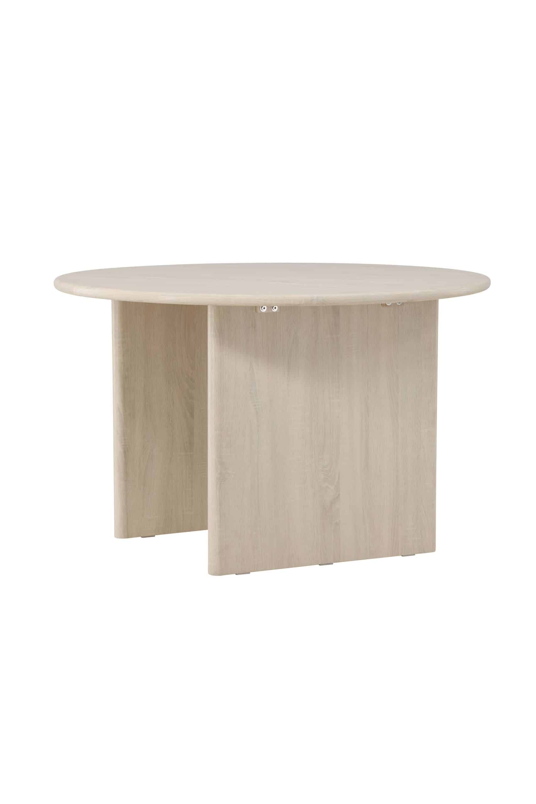 Poten/frame: MDF-basis ontworpen voor stabiliteit op een ronde voetafdruk van 120 cm; strak, modern silhouet.