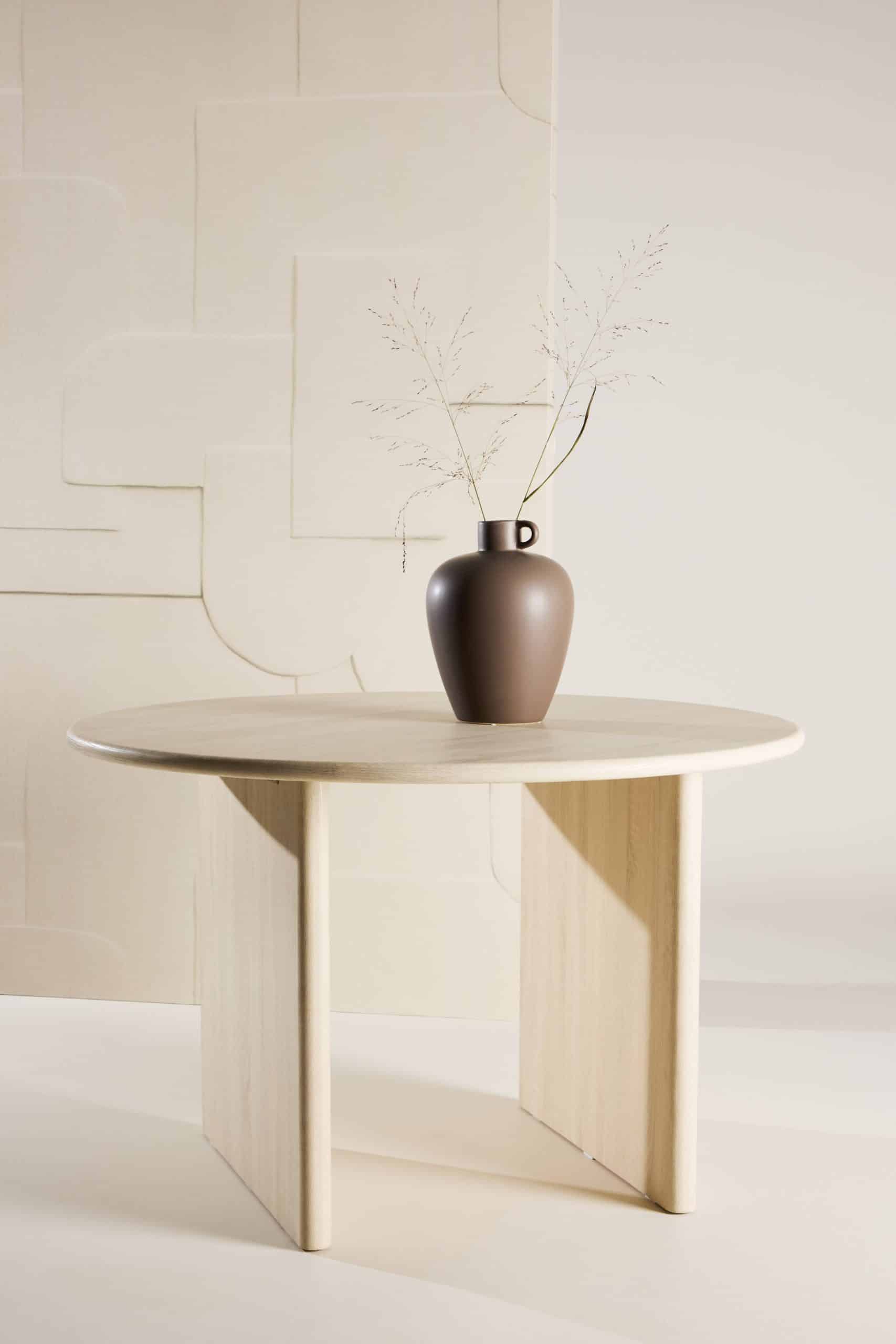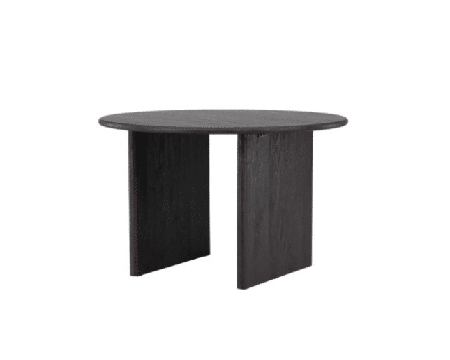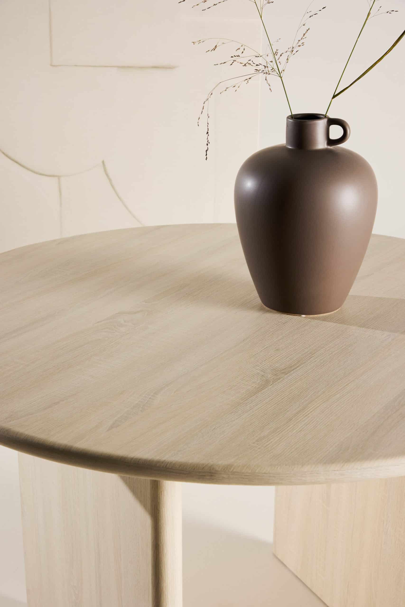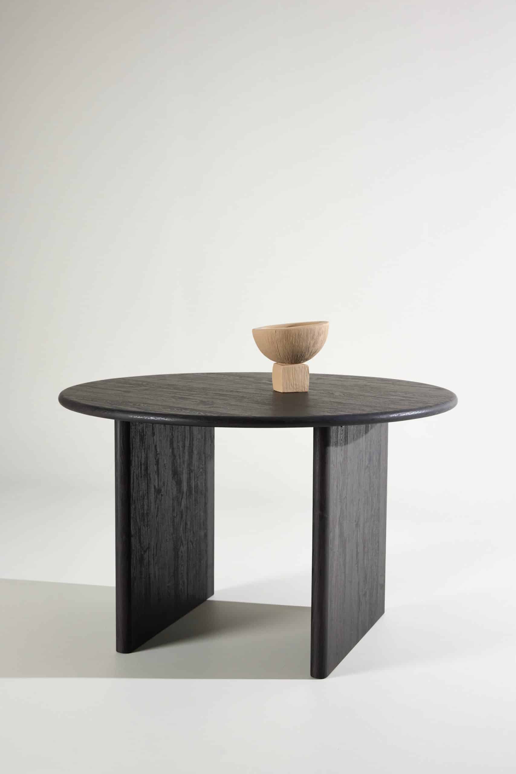 Poten/frame: MDF-basis ontworpen voor stabiliteit op een ronde voetafdruk van 120 cm; strak, modern silhouet.