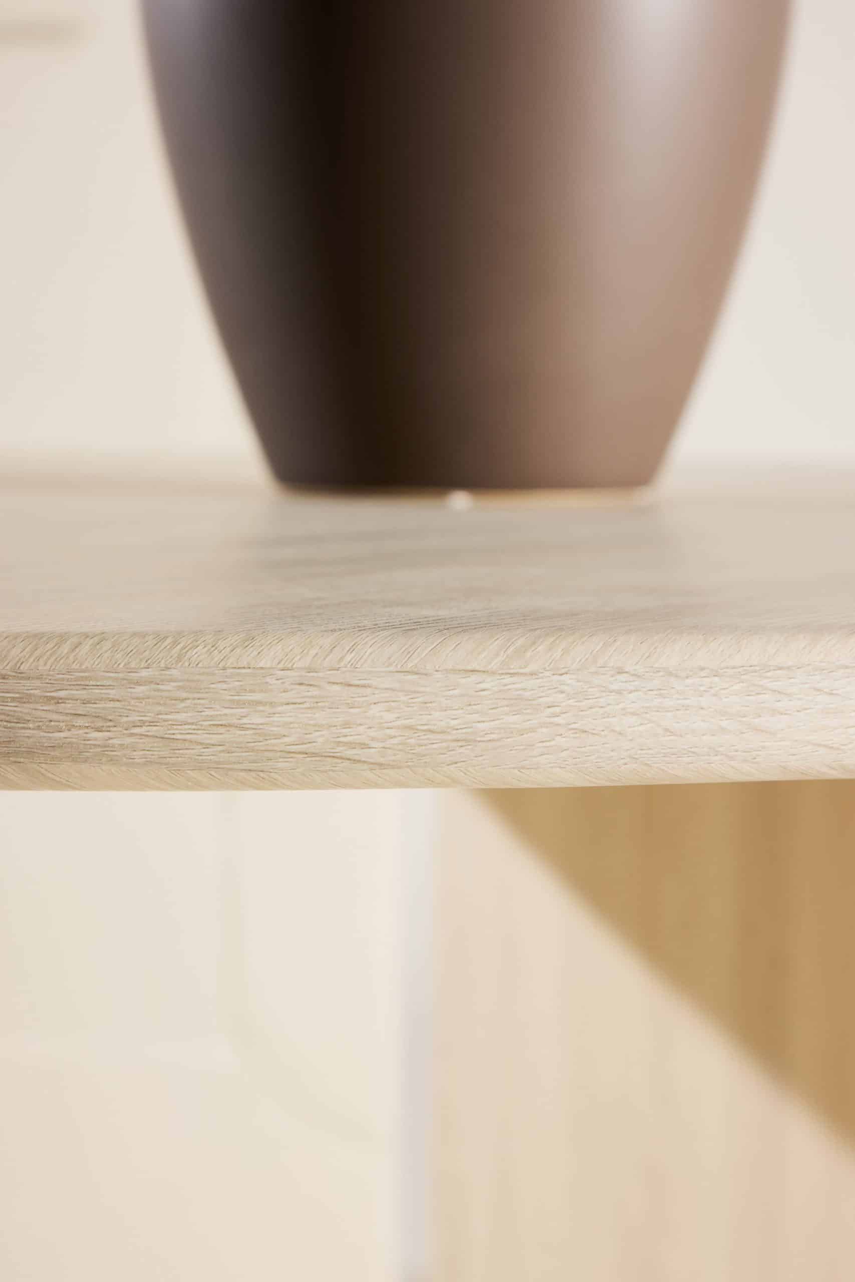 Blad: MDF-tafelblad met een substantieel profiel van 3 cm voor een solide, uitgebalanceerd gevoel.