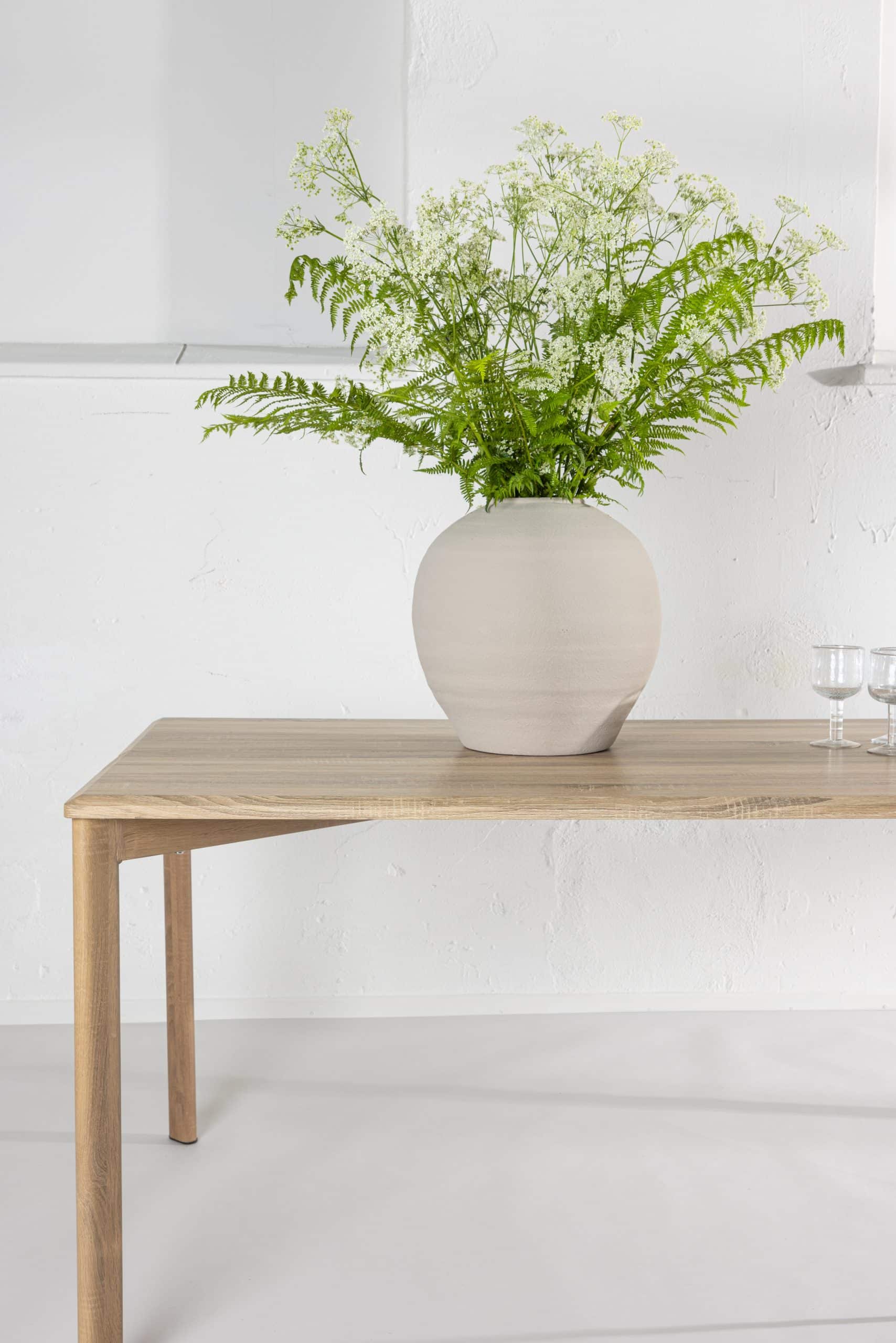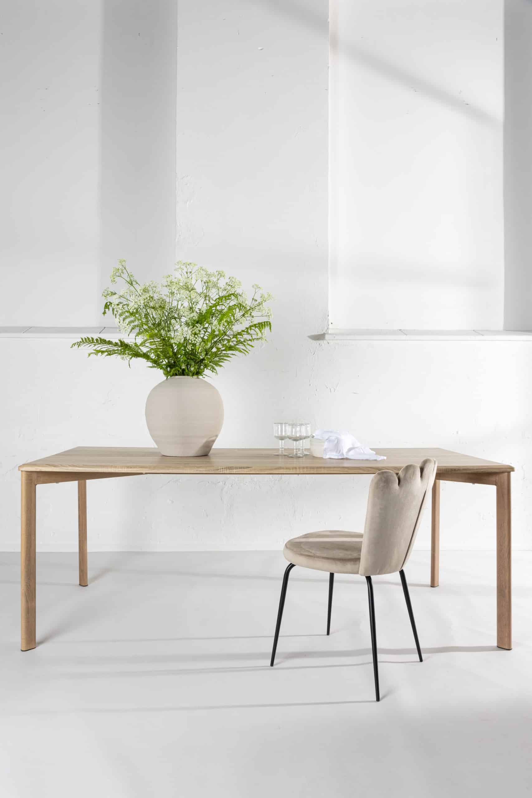 De DAMON eettafel van VENTURE DESIGN distilleert klassieke Scandinavische rust in een strak, rechthoekig silhouet. Een wit gepleisterd MDF-blad combineert met rechte lijnen voor een rustieke en toch verfijnde look. Met een afmeting van 200×90×75 cm verwelkomt hij spreads in familiestijl en gemakkelijke gesprekken.