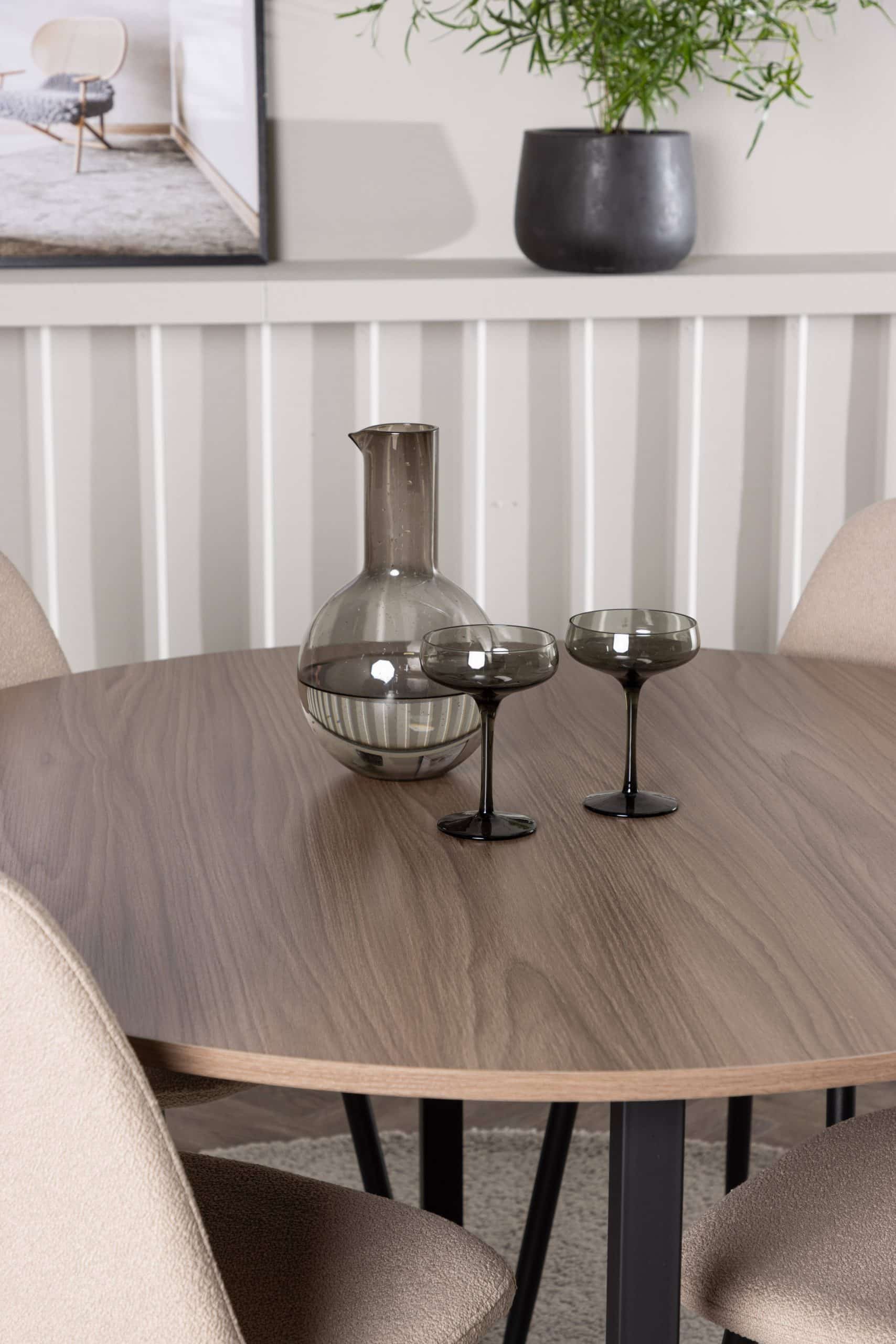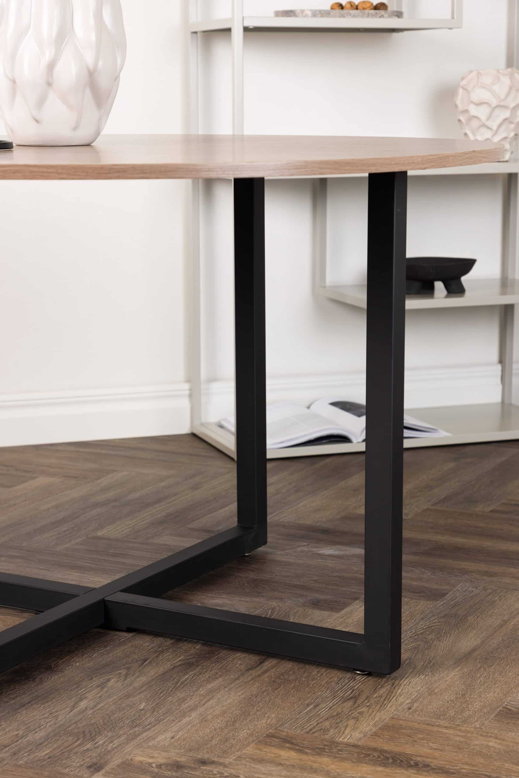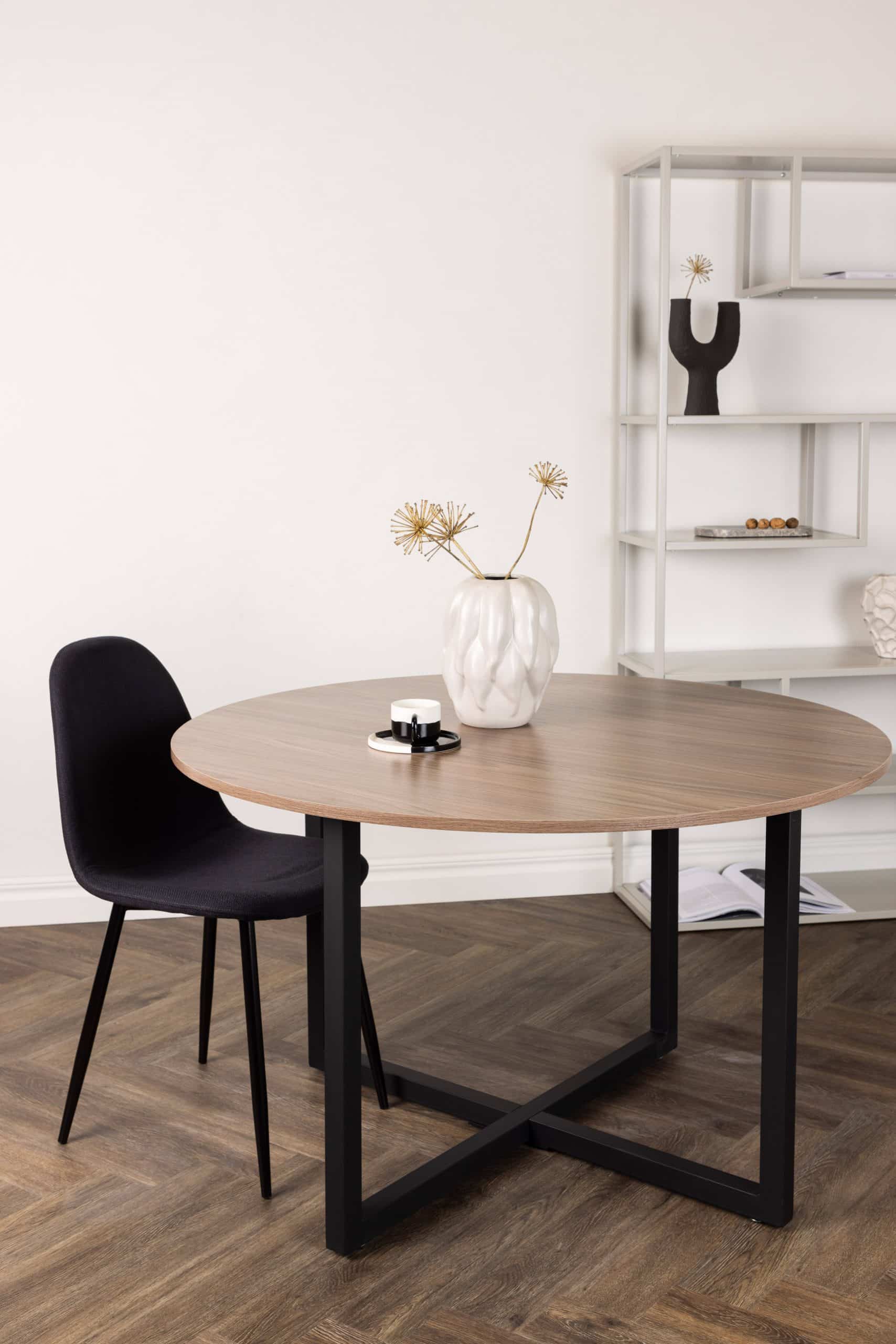 De eettafel Durango heeft uitnodigende, ronde vormen en een klassiek design dat door de jaren heen standhoudt! De tafel behoort tot de Venture Home collectie, heeft een walnootkleurig tafelblad in MDF en rechte tafelpoten in zwart staal. Combineer met een paar heerlijke eetkamerstoelen en je krijgt een complete foodgroep in huis – hier komt niemand op het randje terecht!