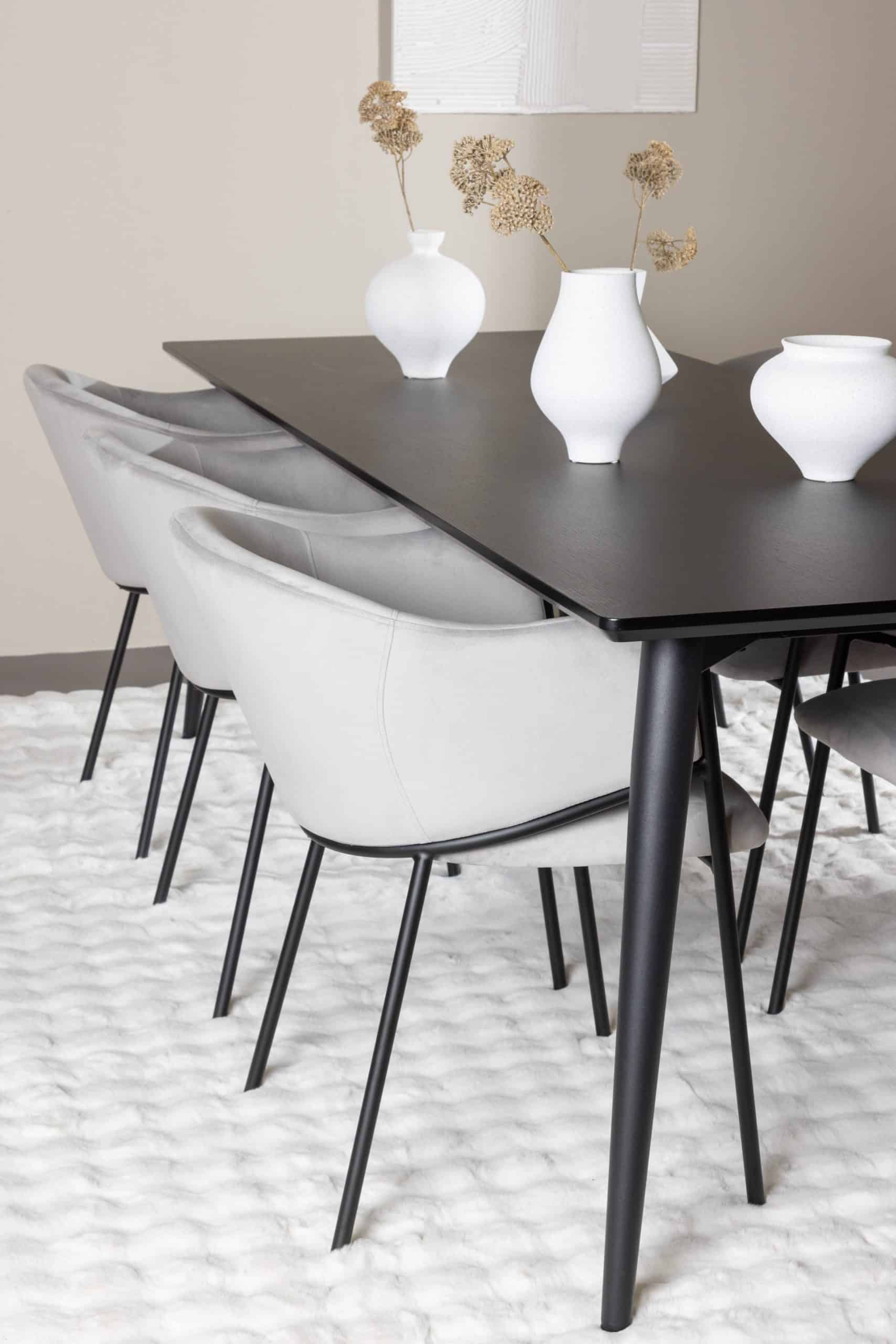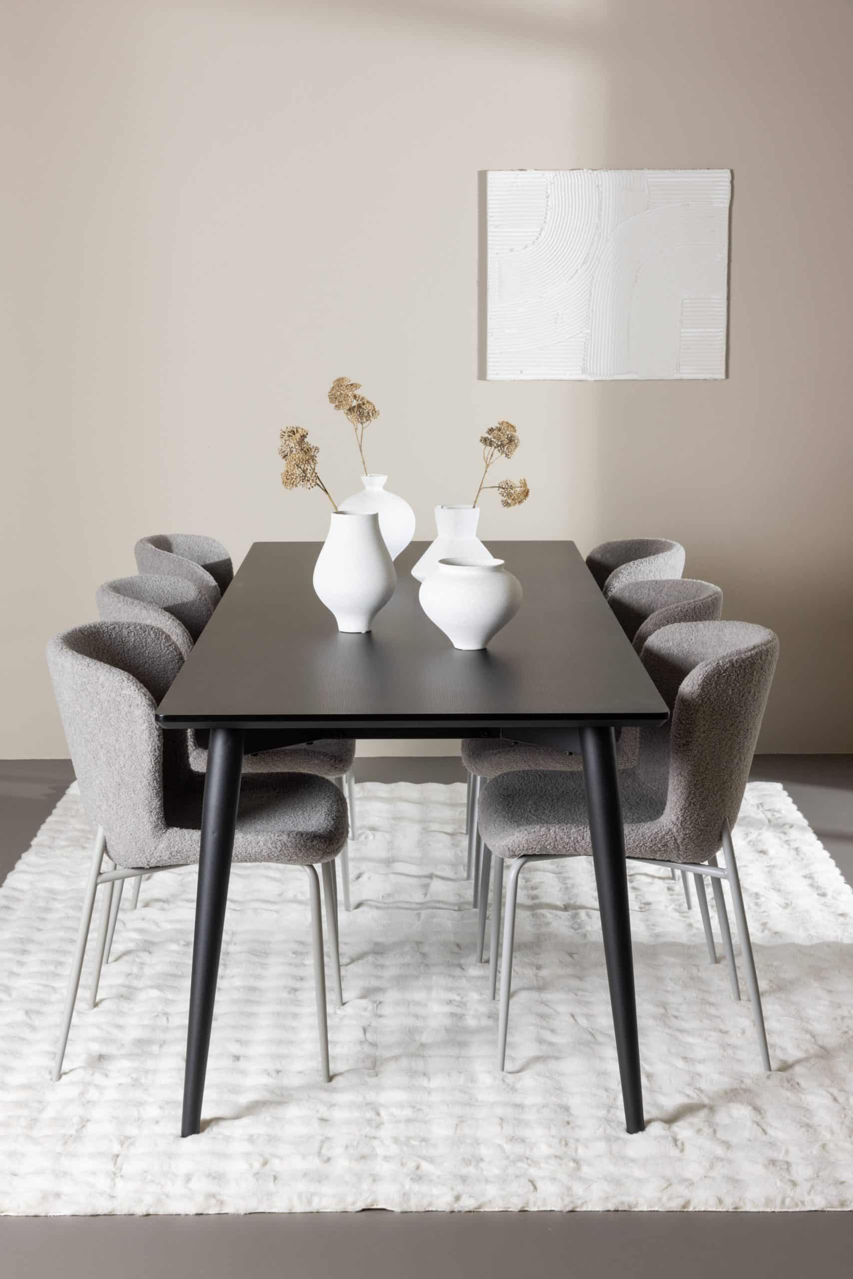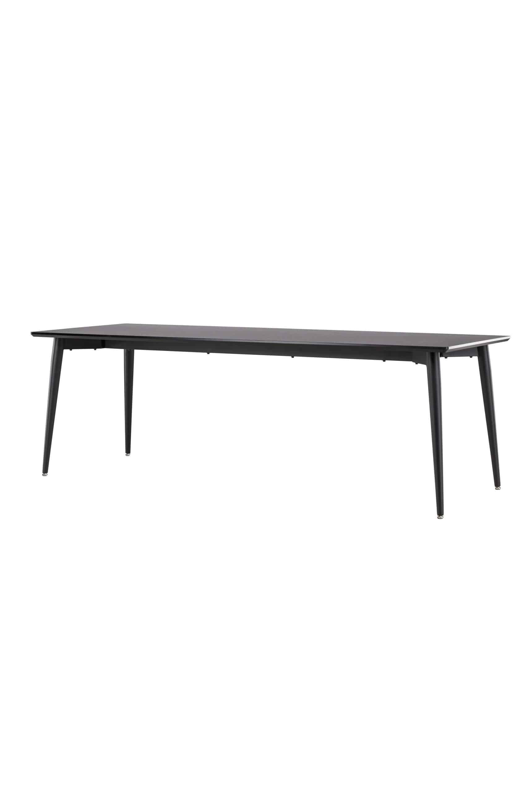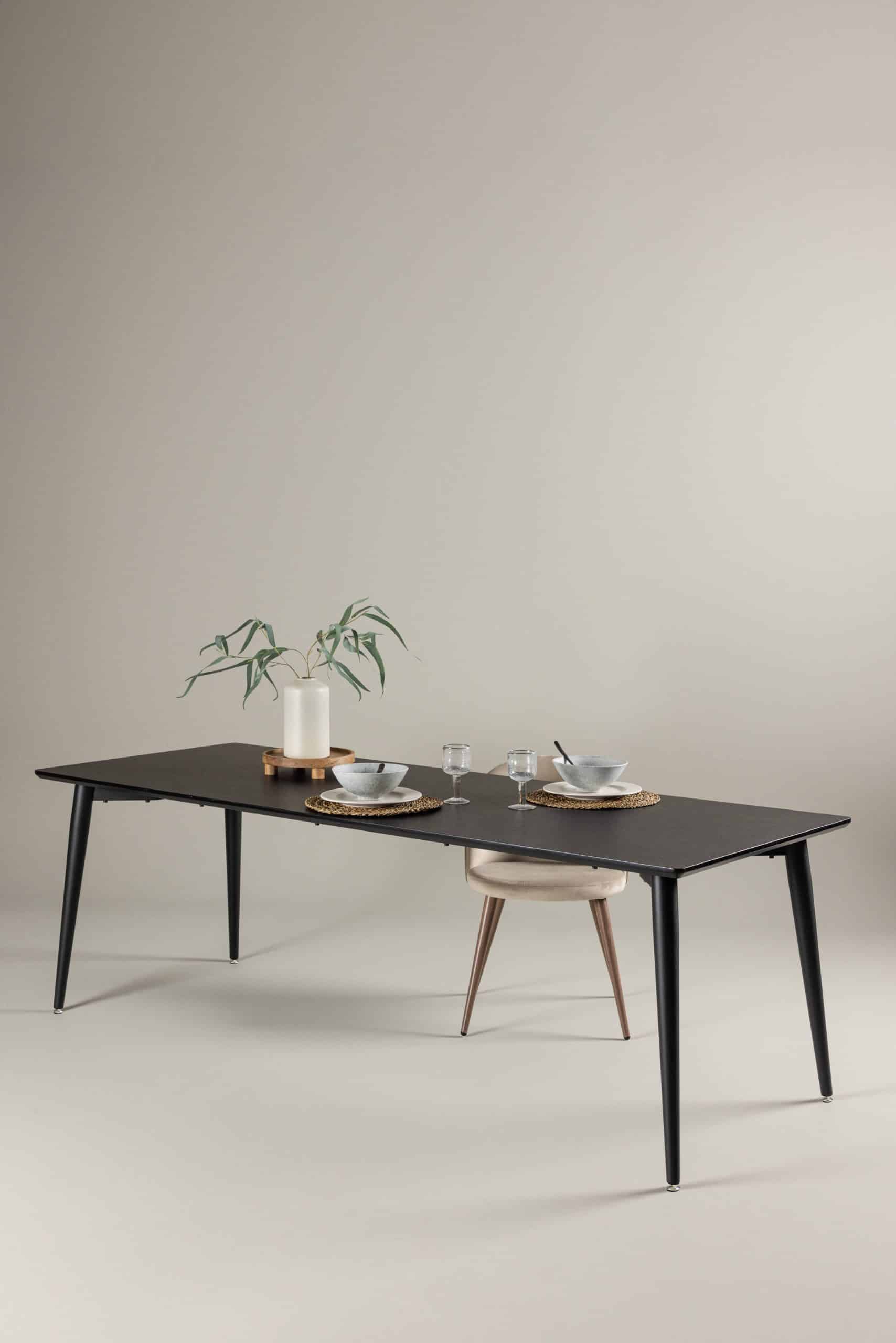 De ELLIS eettafel van VENTURE DESIGN combineert een robuuste uitstraling met moderne uitstraling. Een strak zwart MDF blad van 230×85 cm op stalen poten; duurzaam, verfijnd en moeiteloos te stylen. Van doordeweekse diners tot feestelijke bijeenkomsten: hij verwelkomt met gemak gezelschap.