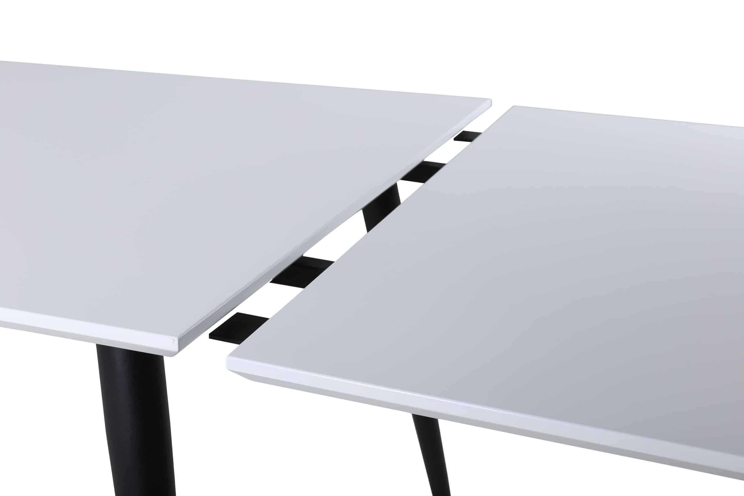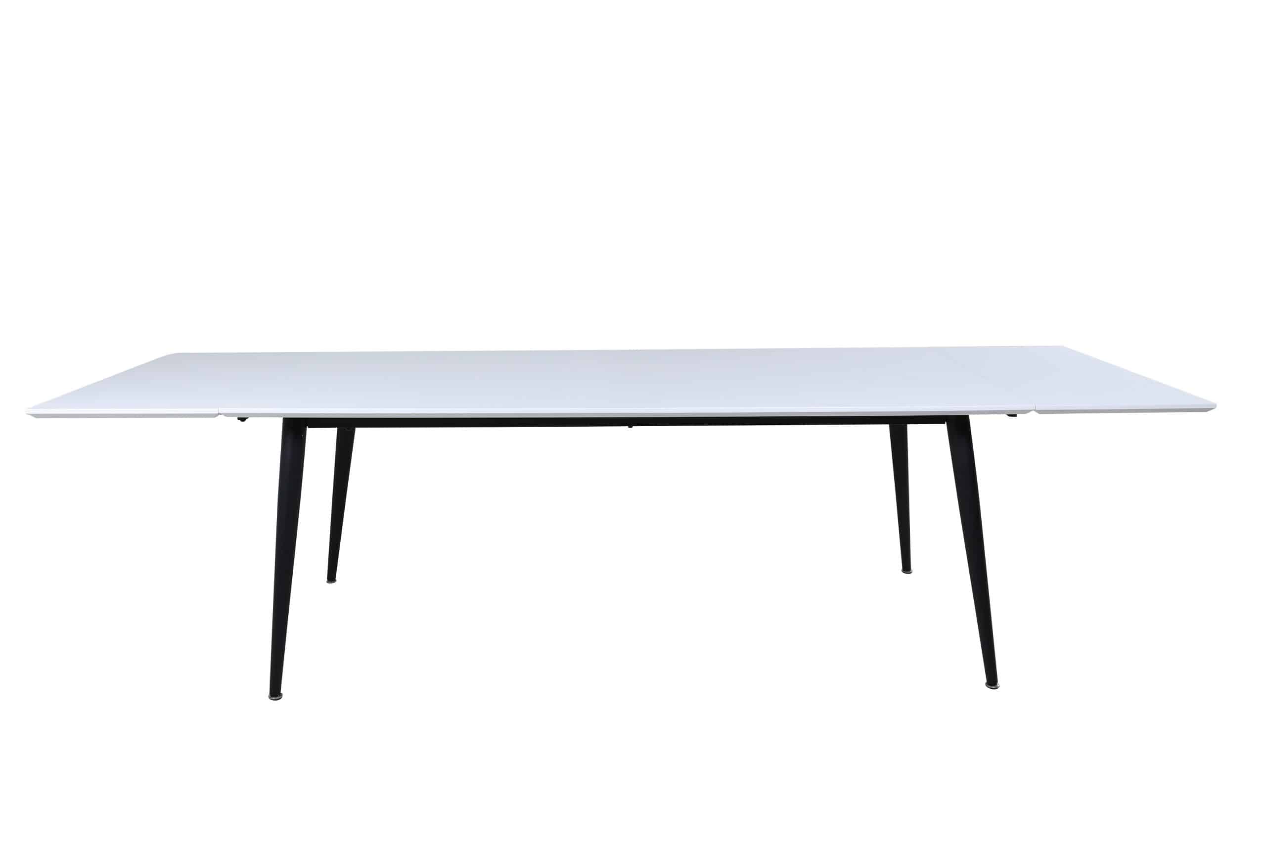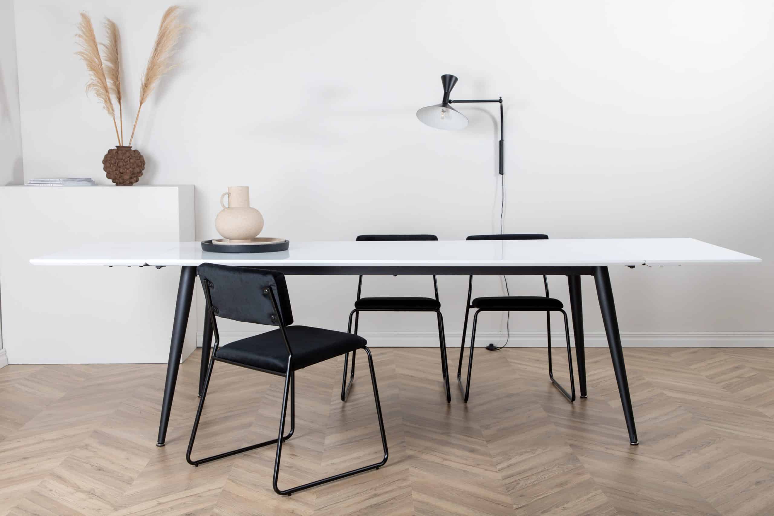 De JIMMY eettafel van VENTURE DESIGN combineert tijdloze stijl met alledaagse functionaliteit. Een fris wit blad van HPL en fineer rust op licht uitlopende zwarte metalen poten; strak, stevig en veelzijdig. Uitbreidbaar voor kleine diners of grote bijeenkomsten, en past zich aan naarmate uw gastenlijst groeit.