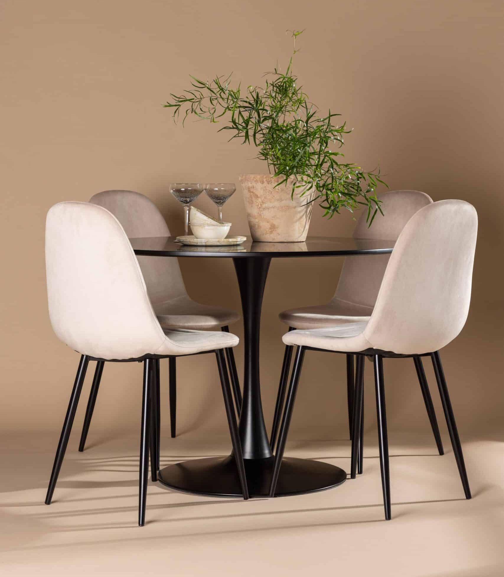 De POLAR eetkamerstoel van VENTURE DESIGN verzacht moderne lijnen met royale vulling. Een volledig gestoffeerd silhouet met zacht afgeronde steunen op slanke, gepoedercoate poten; ondersteunend, tactiel en rustig brutaal. Van doordeweekse avondmaaltijden tot weekenduitjes, het brengt een gezellige sfeer in het hart van uw huis.