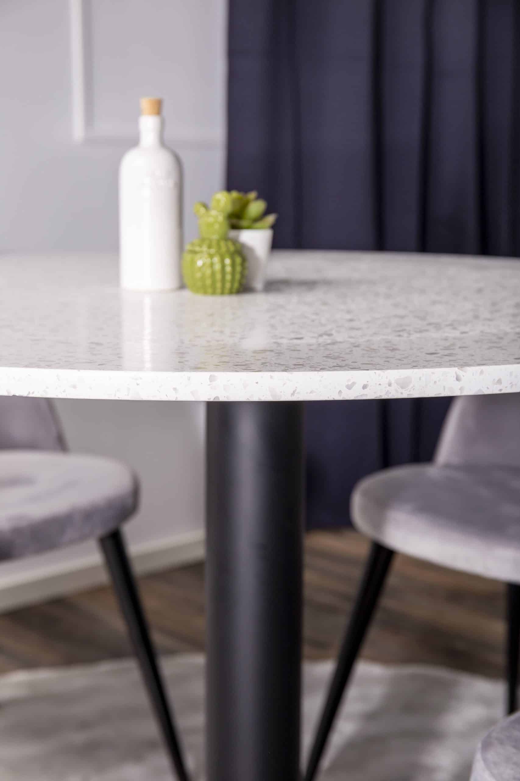 Gemakkelijk te onderhouden – Verzegeld terrazzo en gepoedercoate poten zijn snel schoon te vegen.