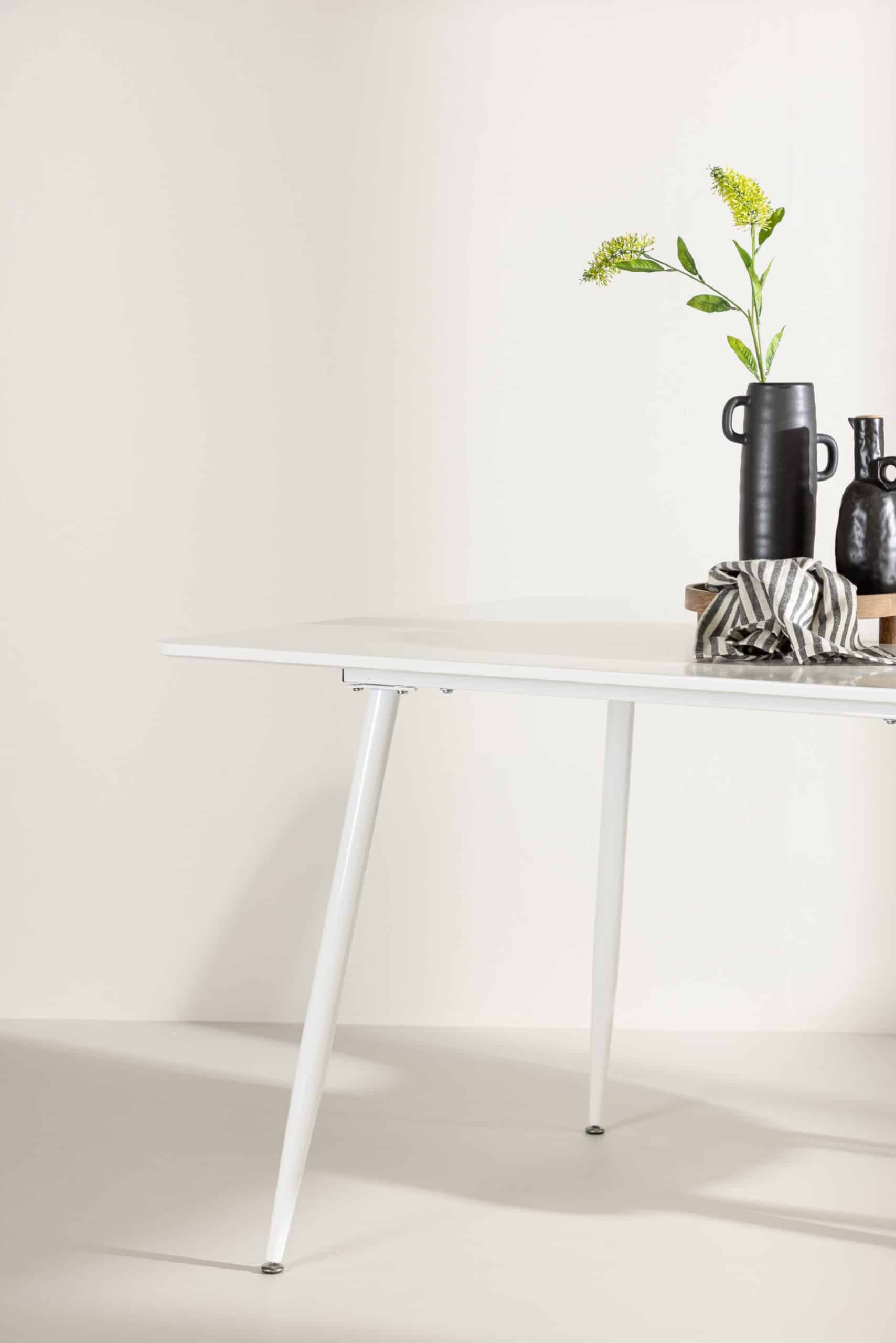 De SILAR eettafel van VENTURE DESIGN brengt helder, veelzijdig gemak voor dagelijkse bijeenkomsten. Een fris wit blad van 180×90 cm in een strak, modern silhouet; luchtig, uitnodigend en moeiteloos te stylen. Van doordeweekse diners tot feestelijke spreads, het maakt ruimte voor gesprekken en verbinding.